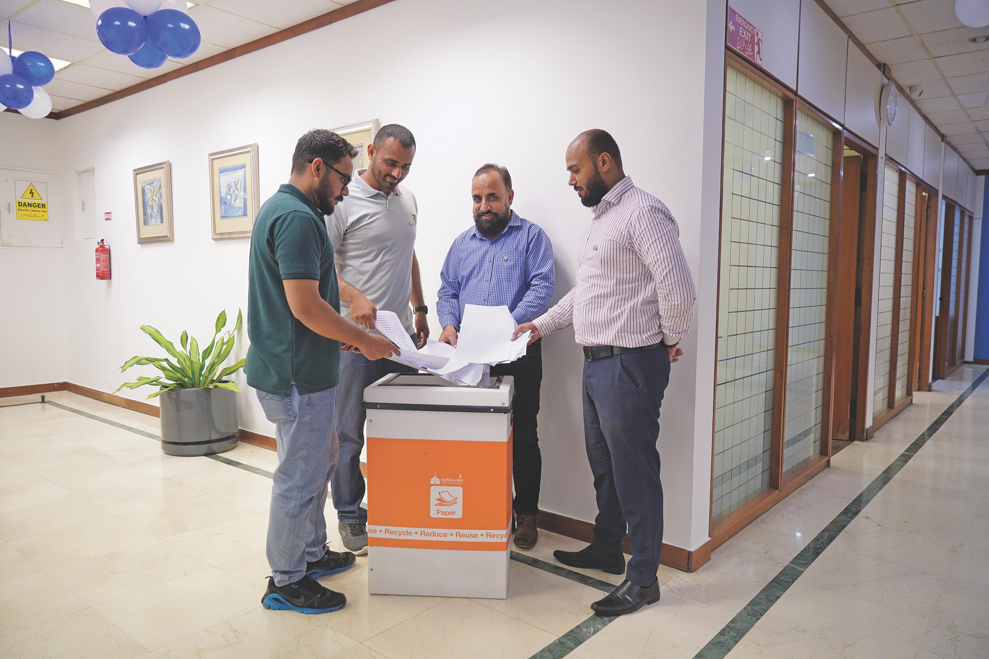 Waste recycling initiatives are implemented in offices, managing and processing waste into recyclable materials in partnership with Al-Wasila Trust and Abroo Educational Welfare Organisation.